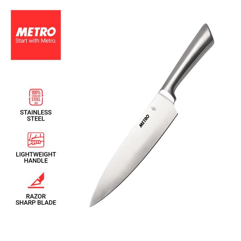 *Made of high carbon stainless steel. Durable rust, stain and wear resistant. *With sharp stainless steel blade for precise cutting *Seamless construction helps to avoid food traps and a contoured stainless steel handle for comfort and control *A multi-purpose kitchen tool that can be used to slice, dice and chop ingredients with precision. *Dishwasher safe L x W x H 35×4.5×2 |