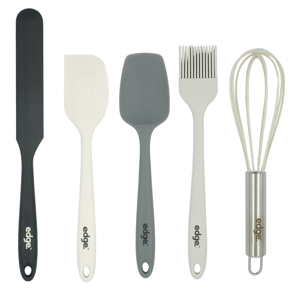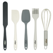 - Set includes: 1 jar scraper, 1 classic spatula, 1 all-purpose spatula, 1 basting and 1 whisk.